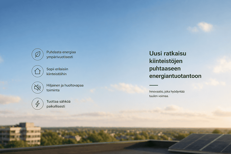 Hankkeen tavoitteena on kehittää ja tuotteistaa innovatiivinen pientuulivoimala kiinteistökohtaiseen, päästöttömään sähköntuotantoon. Tavoitteena on optimoida laitteen energiatehokkuus ja valmistuskustannukset sekä luoda skaalautuva, kaupallisesti kilpailukykyinen tuote kotimaan ja vientimarkkinoille.