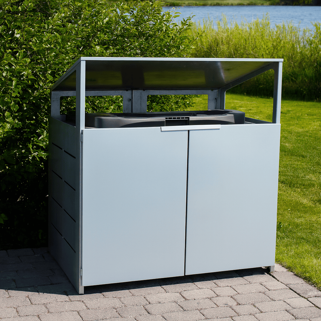 PP-Tuotteen metallinen jätekatos pitää jäteastian poissa näkyvistä. Jäteastian kansi on kuitenkin vaivatta nostettavissa. Katoksen värivaihtoehtoja ovat valkoinen, tummanharmaa, musta ja sinkitty. Kokonaan metallista valmistettu jätekatos kestää, mutta on käyttöaikansa jälkeen on myös helposti kierrätettävä.
