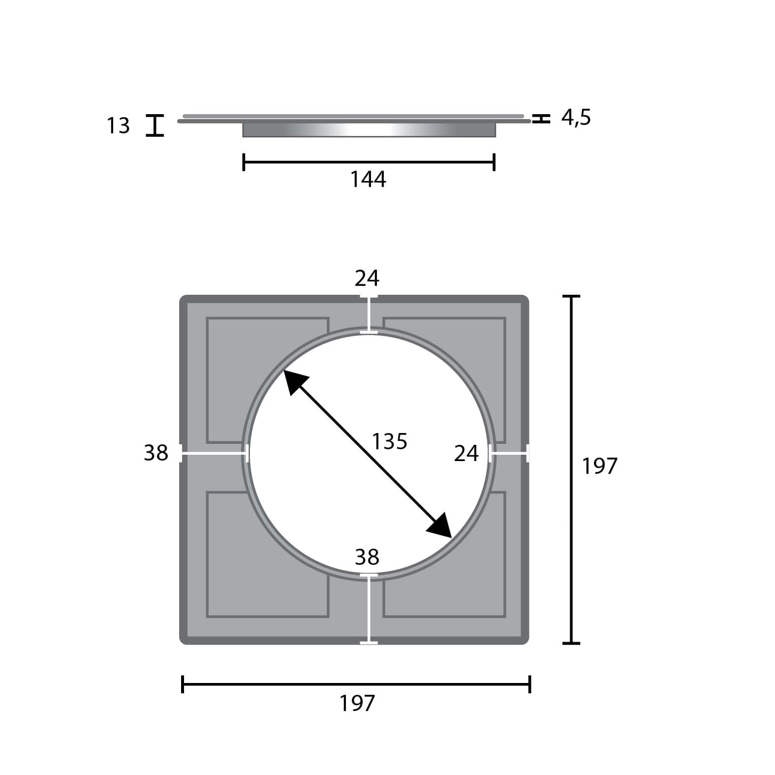 lattiakaivon asennuskehys, epäkesko asennuskehys, muovinen kehys, 197x197mm kehys