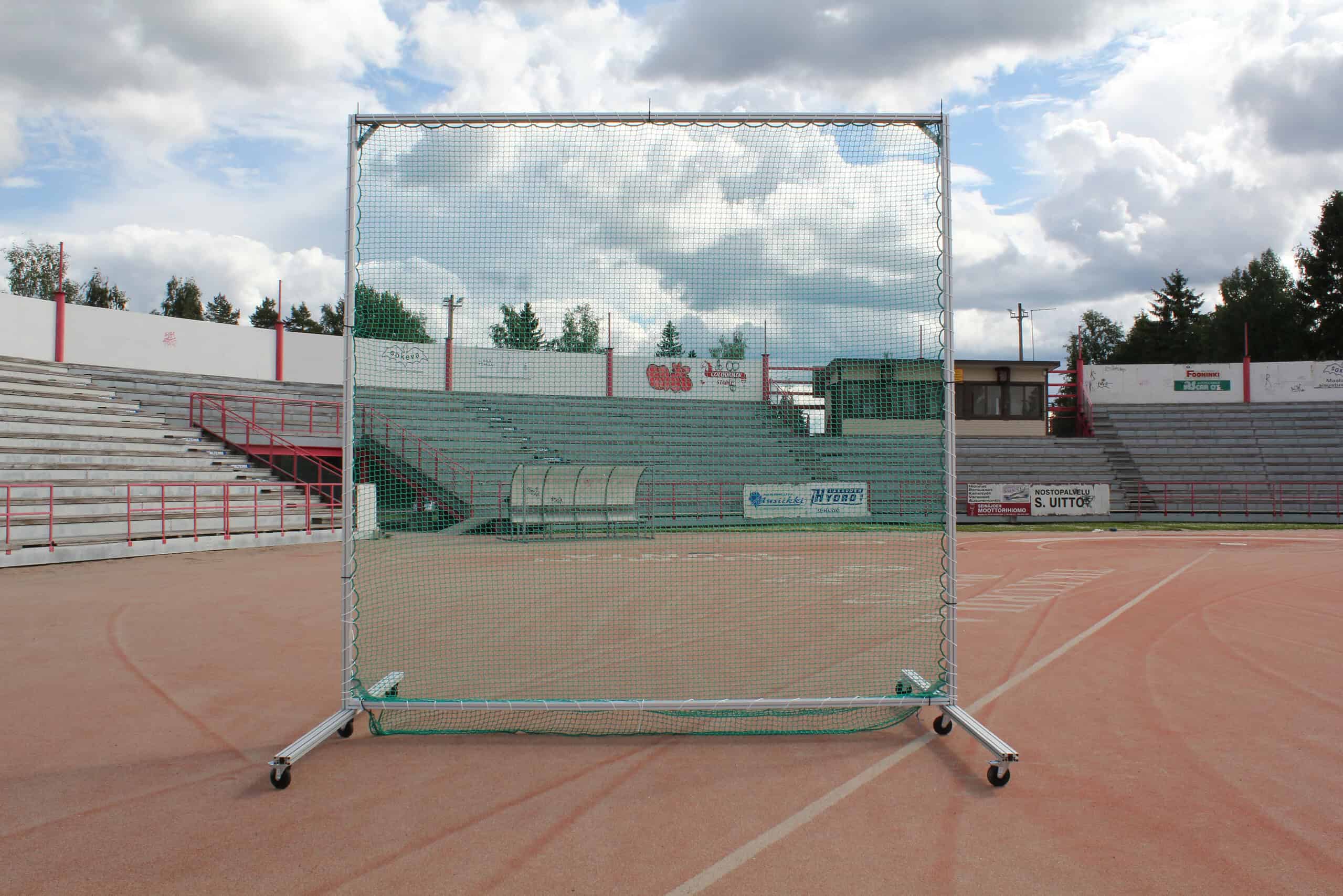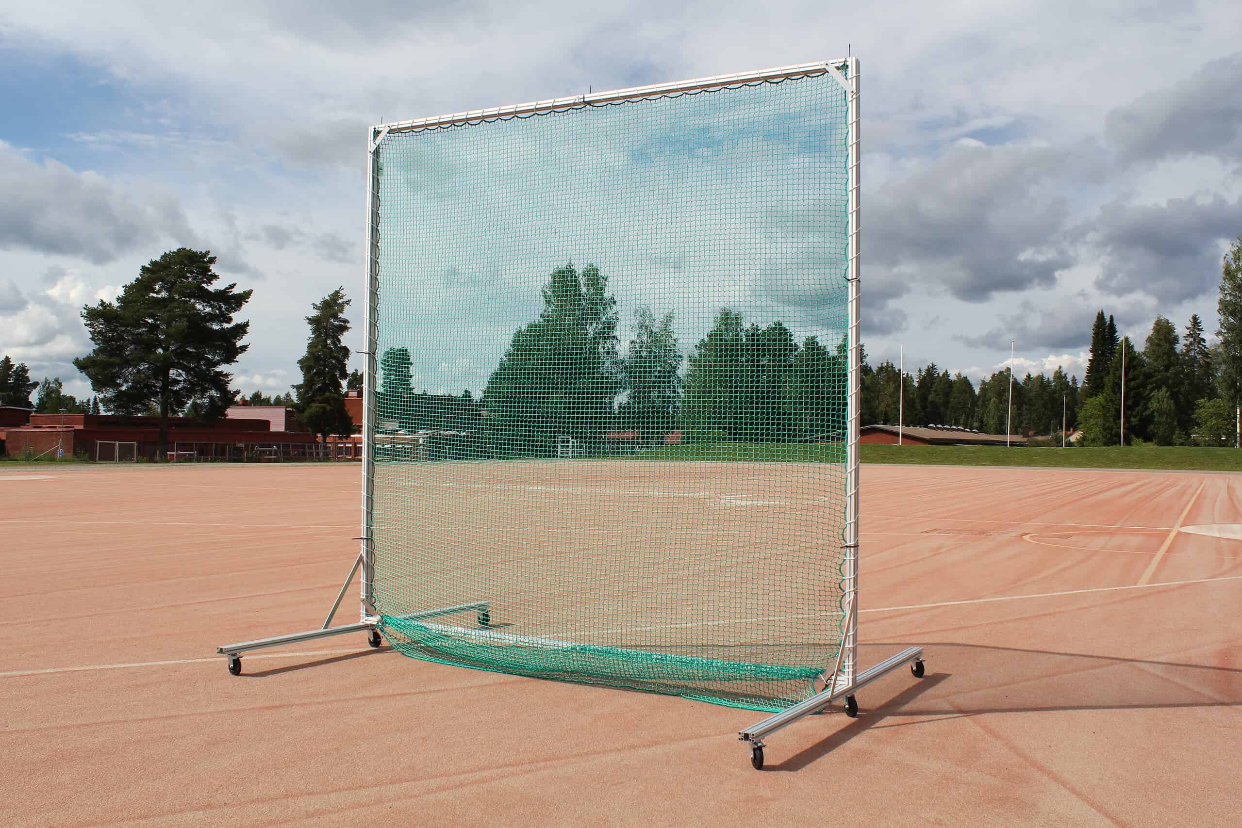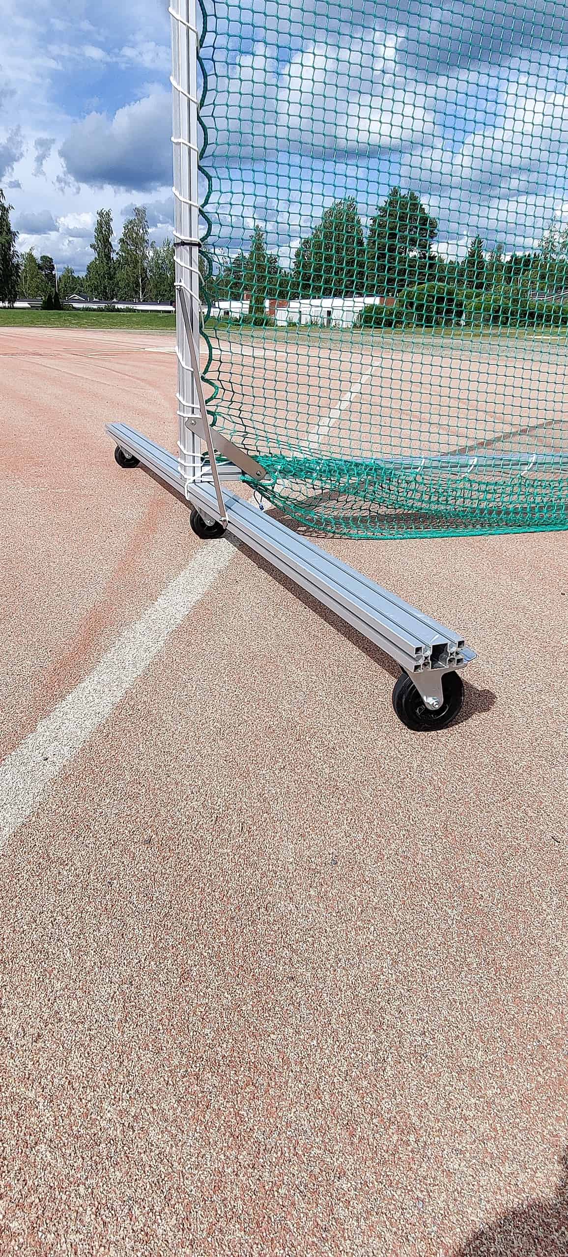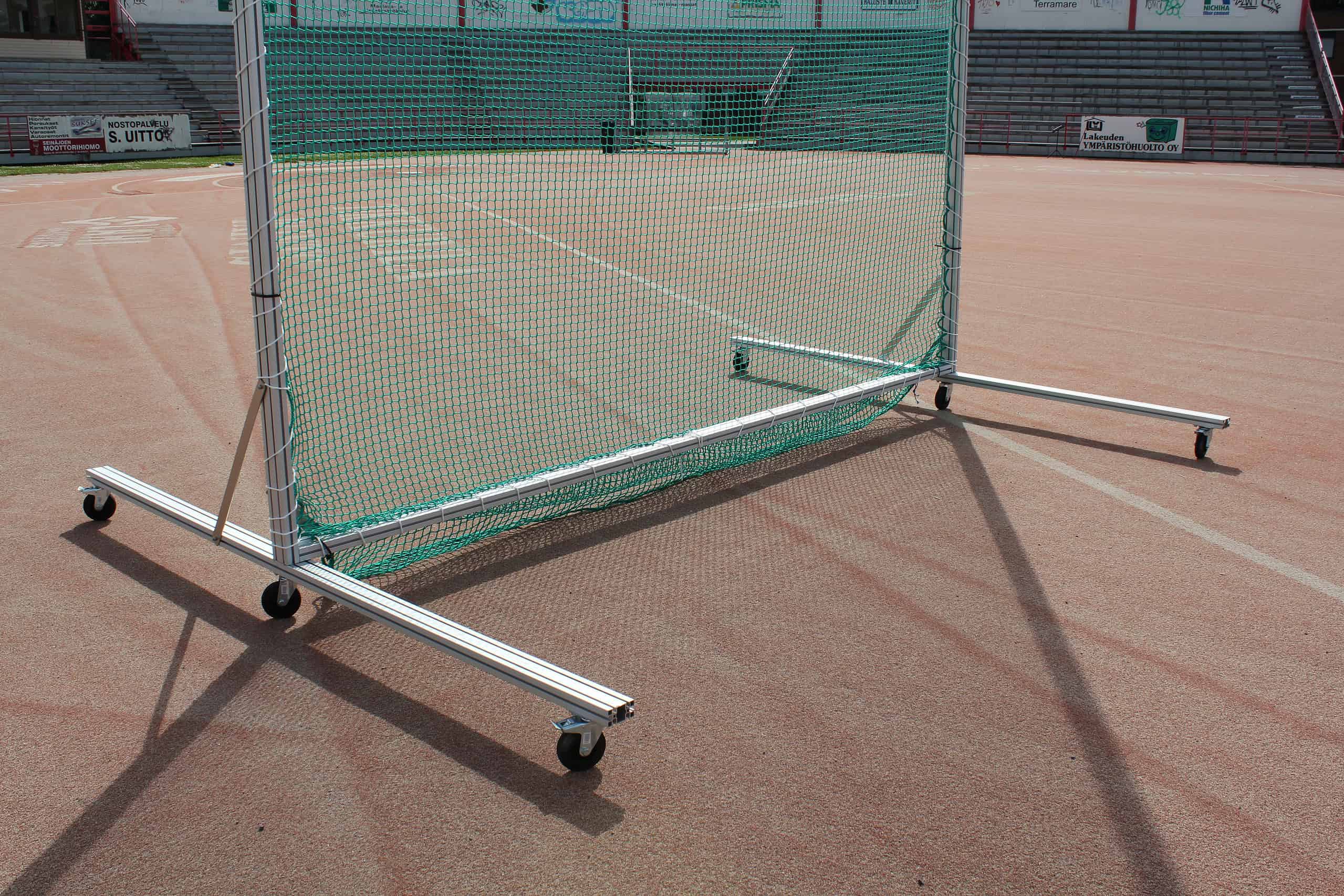 Pystytä lyöntiverkko kätevästi esimerkiksi jalkapallokentälle. Kehikko pystytetään pyörälliseen alustaan, joten se on kevyt ja helppo siirtää haluamaansa paikkaan.