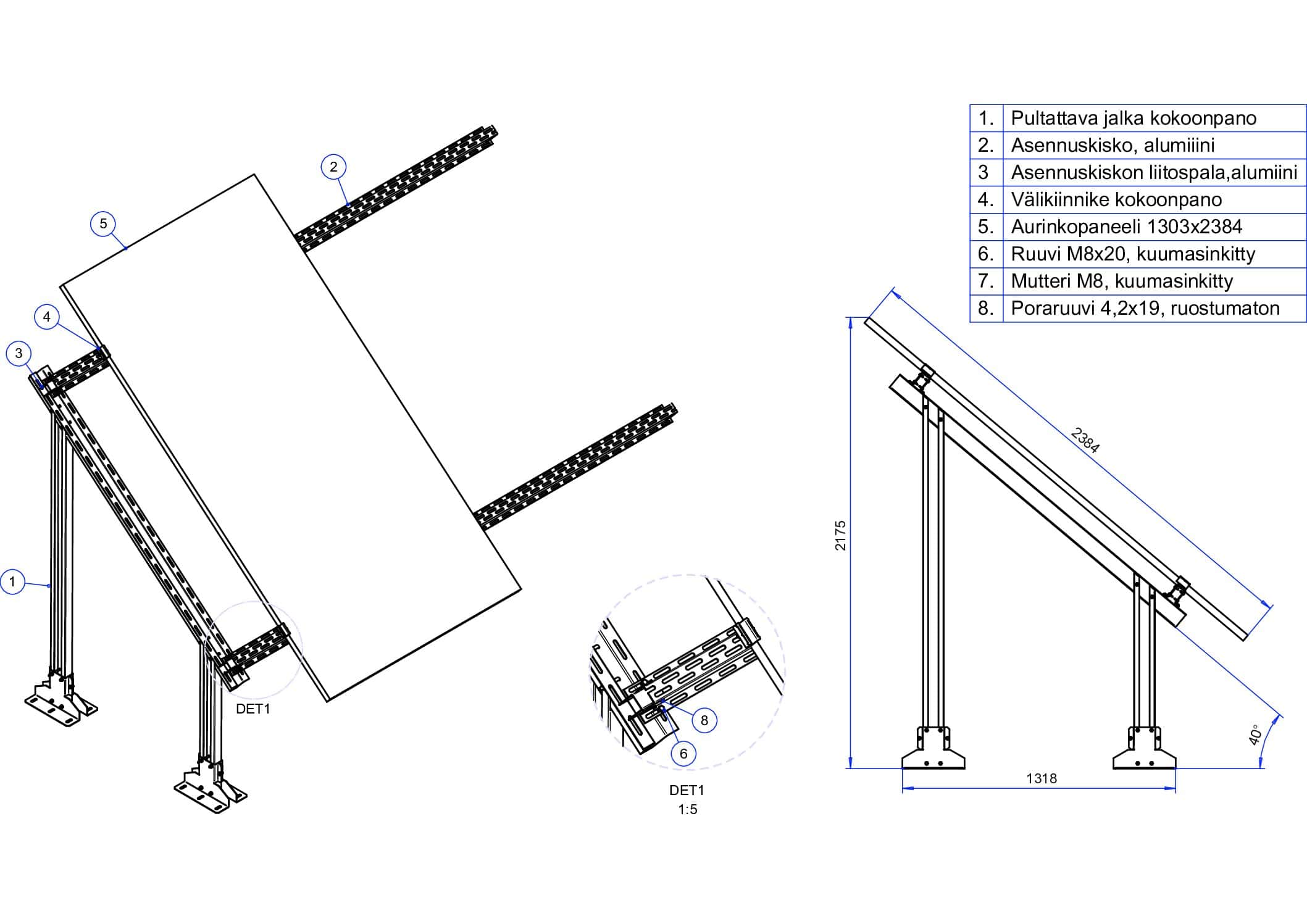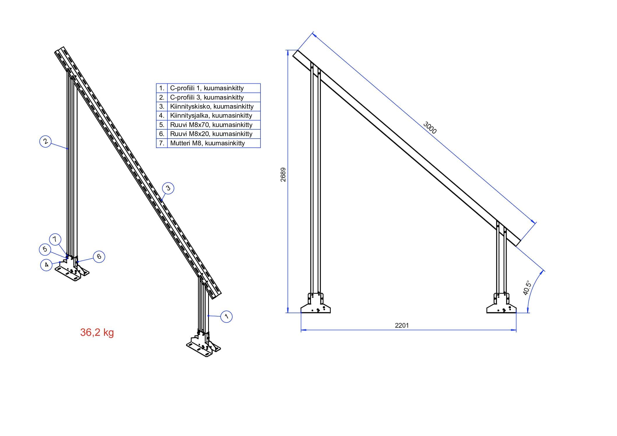 Haluatko aurinkopaneeleillesi tukevan ja pitkäikäisen asennusratkaisun? Pultattava maateline tarjoaa vahvan ja kestävän kiinnityksen esimerkiksi betoniperustukseen tai muuhun kovaan alustaan. Sen suunnittelu takaa paneelien optimaalisen kallistuskulman ja maksimaalisen energiantuoton kaikissa sääolosuhteissa.