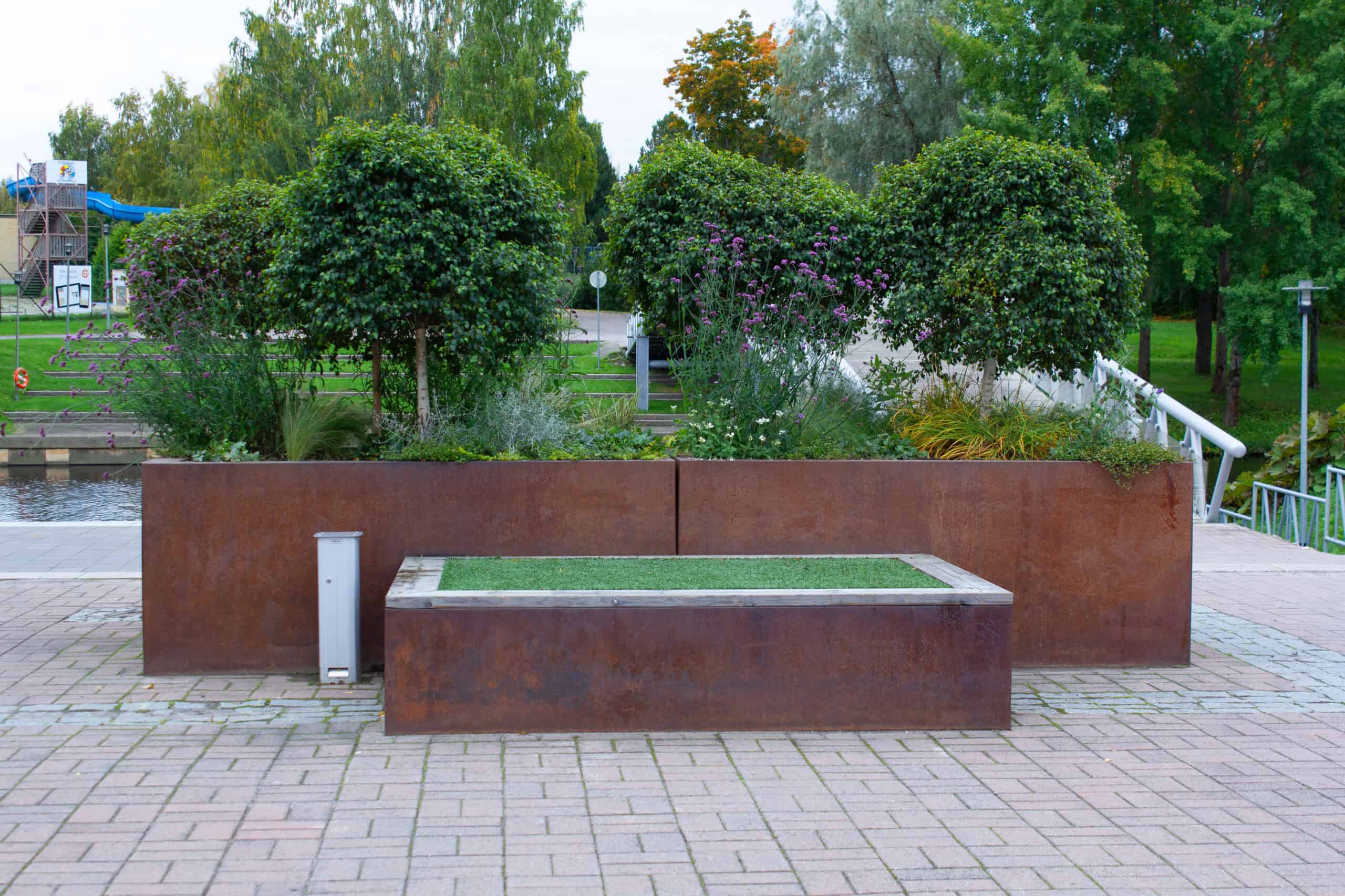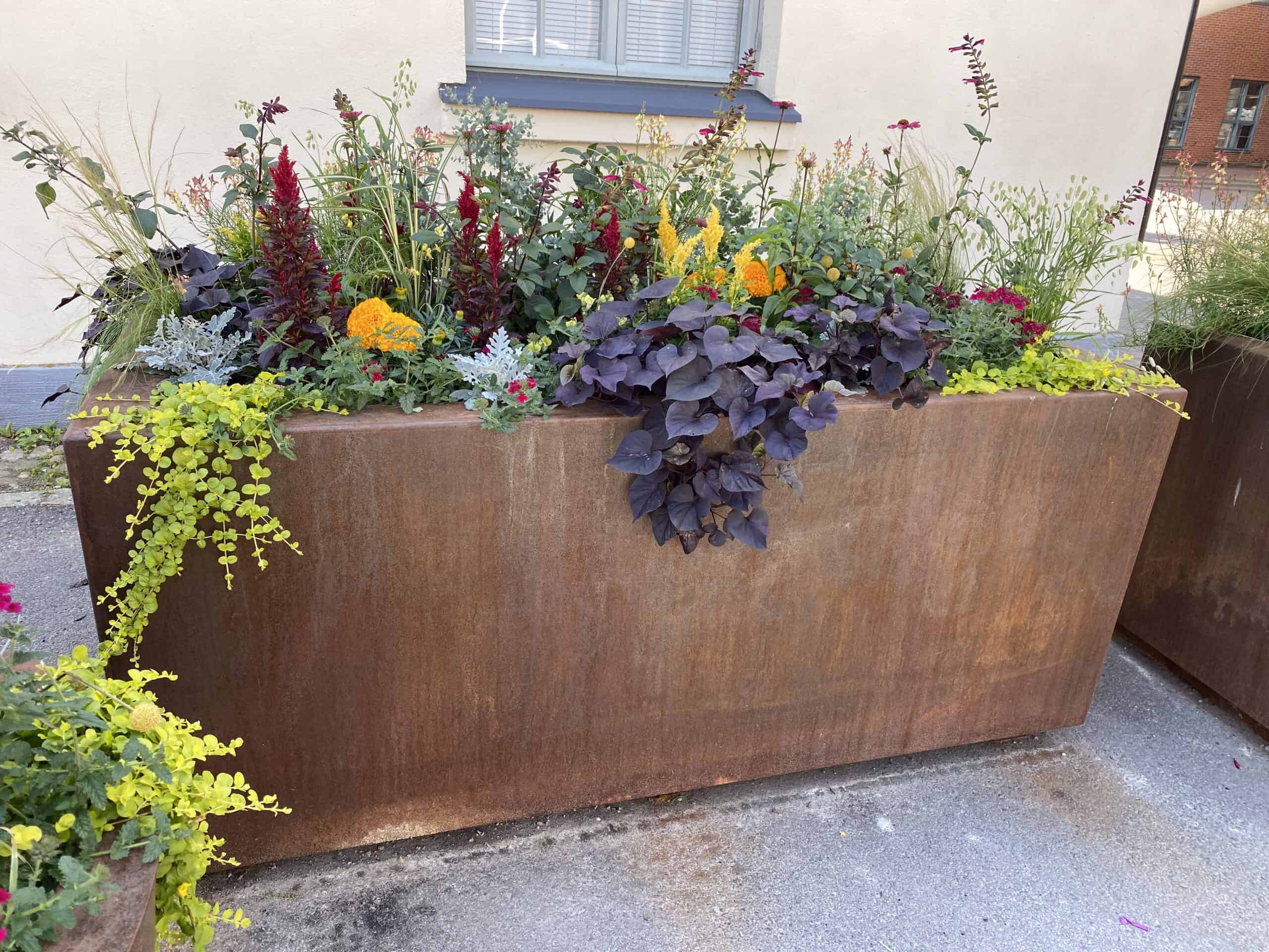 kukkalaatikko, istutusastia, metallinen kukkalaatikko, metallinen istutusastia, corten istutusastia, corten kukkalaatikko