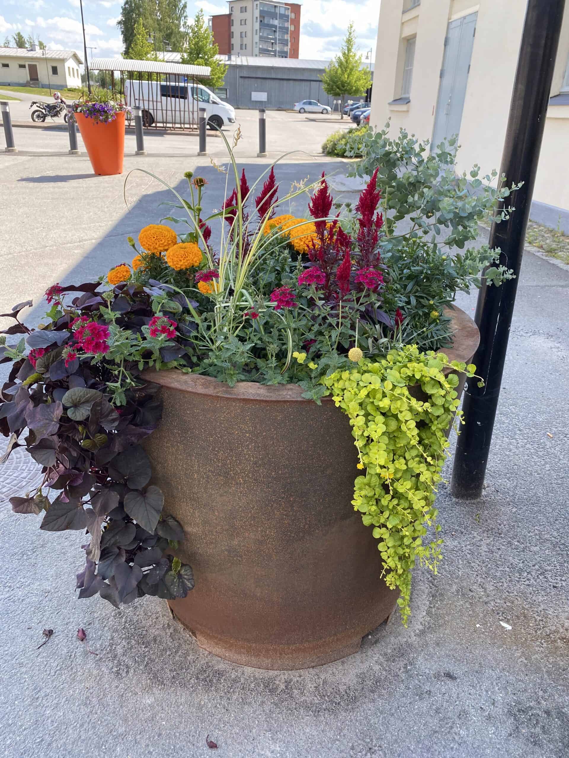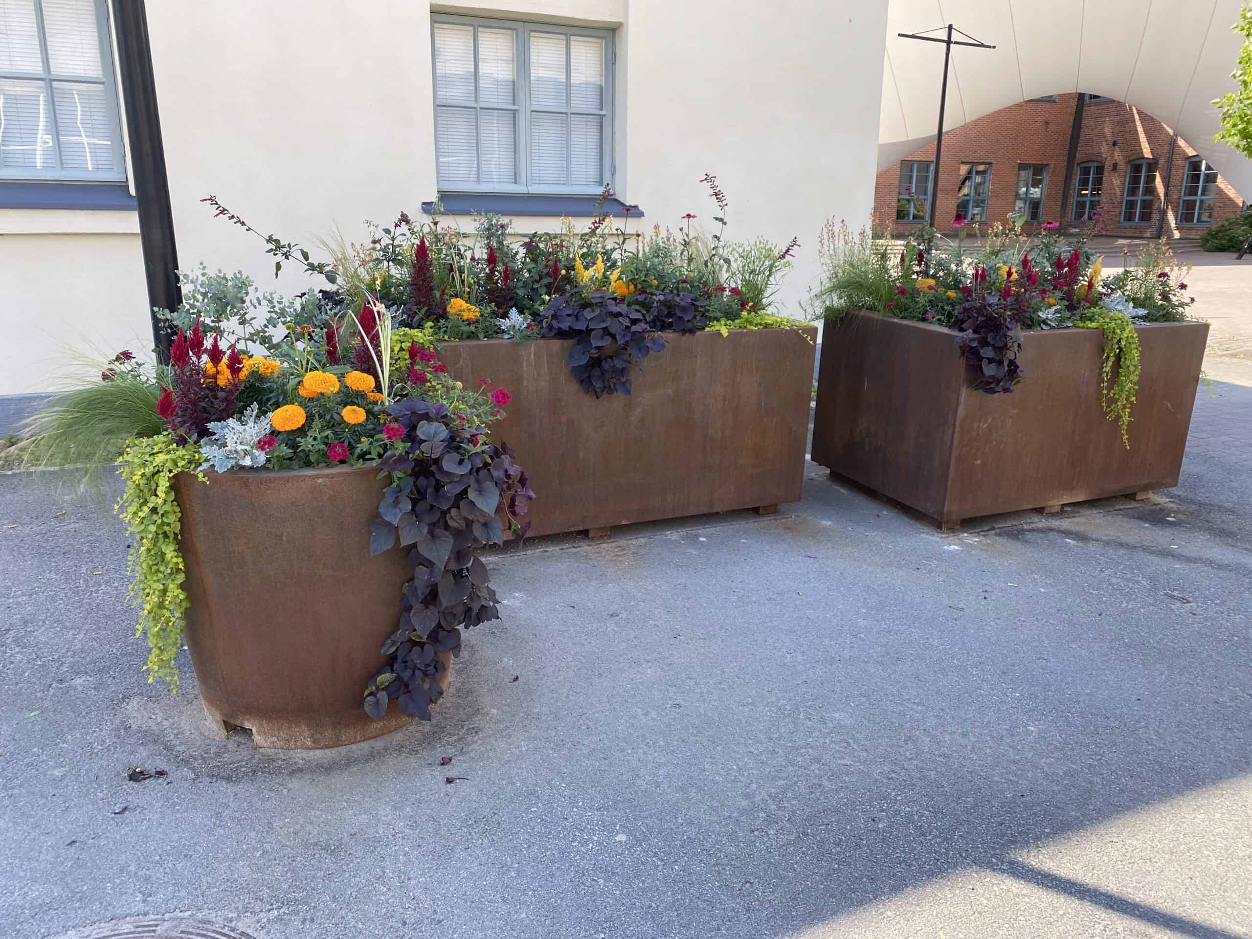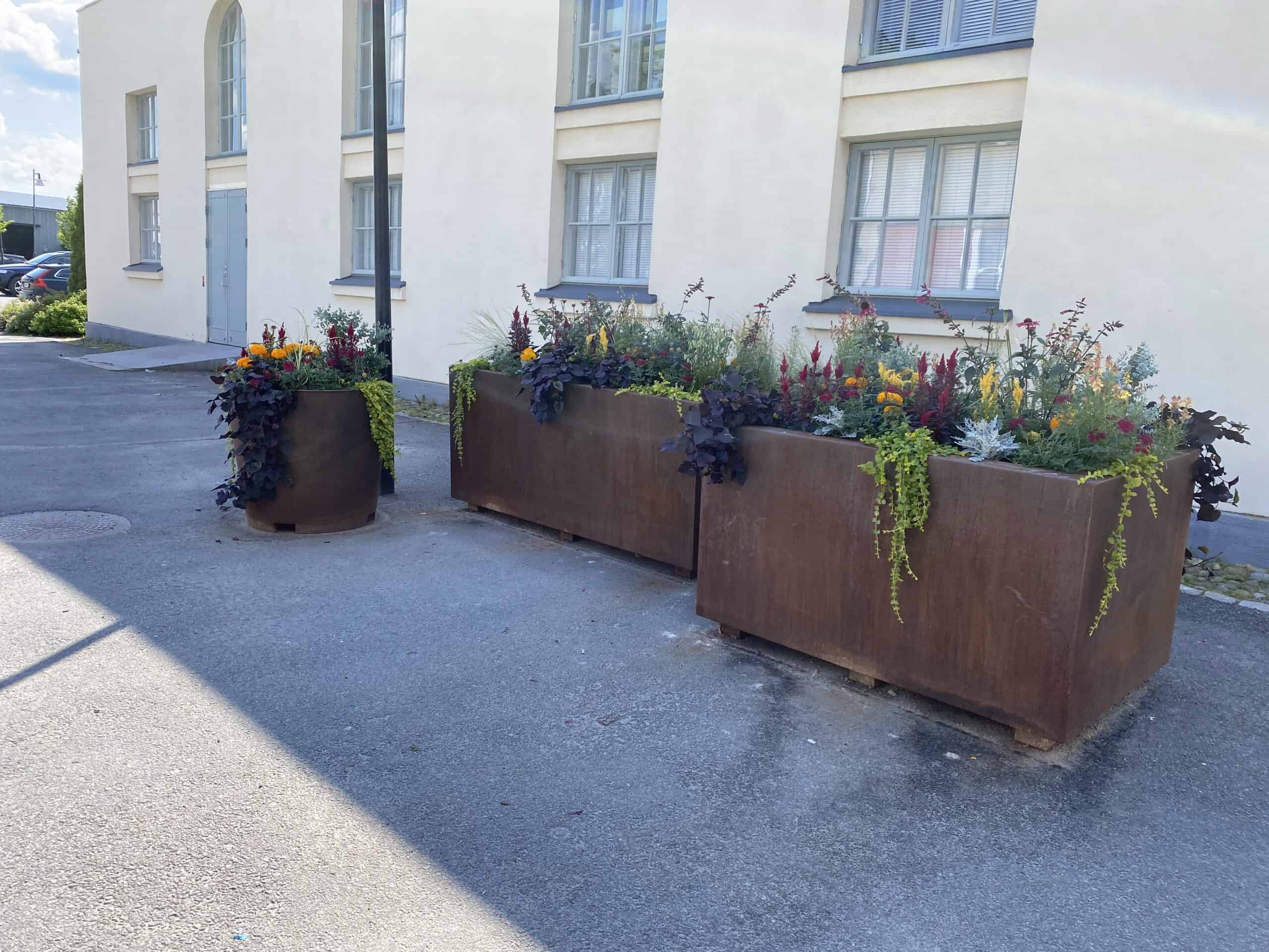 • Näyttävät kookkaat corten-teräksestä valmistetut kukkalaatikot