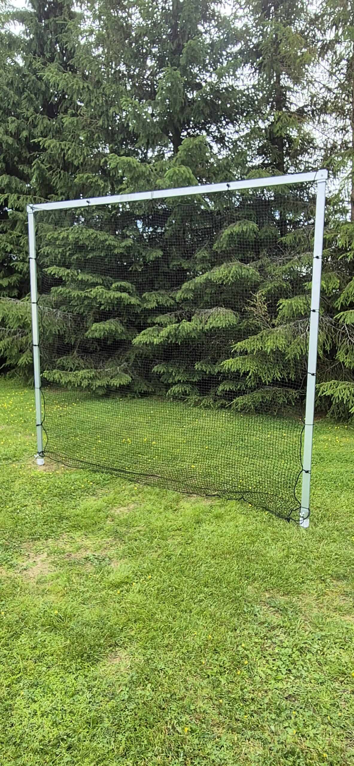 Pystytä lyöntiverkko kätevästi vaikka kotipihaasi. Se on helppo kasata ja asentaa, eikä se vie syvyyssuunnassa tilaa. Kehikko pystytetään maaruuveihin, joten sen voi tarvittaessa siirtää toisaalle. Kasattuna lyöntiverkon leveys on n. 3 m ja korkeus n. 2,7 m.